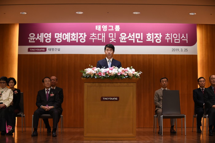 [세계타임즈 이광원 기자]태영그룹은 2019년 3월 25일 서울 여의도 사옥에서 윤세영 (尹世榮) 회장을 명예회장으로 추대하였으며 윤석민 (尹碩敏) 부회장은 태영그룹 회장으로 취임하였고, 이재규 (李梓揆) 사장은 태영건설 부회장으로 승진하였다.