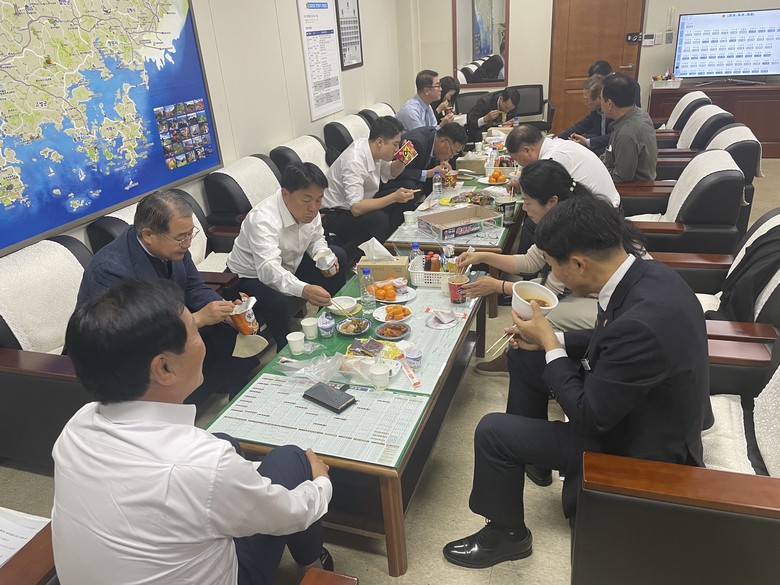 ▲ 지난 28일 문화복지위원회 정회 후 컵라면으로 끼니를 해결하는 모습 |