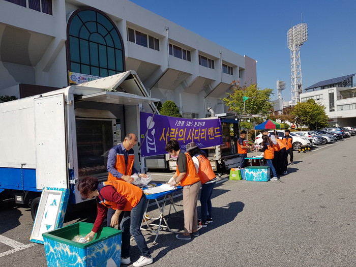 [대전=세계타임즈 이장성 기자] SNS 대전시봉사단체 사단법인 사랑의 사다리(리더 이정제) 밴드는 18일 오전10시, 대전시각장애인연합회(회장 이상용)주관으로 한밭체육관에서 진행된 제39회 흰지팡이의 날 행사에서 통닭 250마리 봉사와 교통봉사, 전체 행사 안내봉사로 시각장애인들에게 우리 사회의 따뜻한 사랑을 실천하였다.
