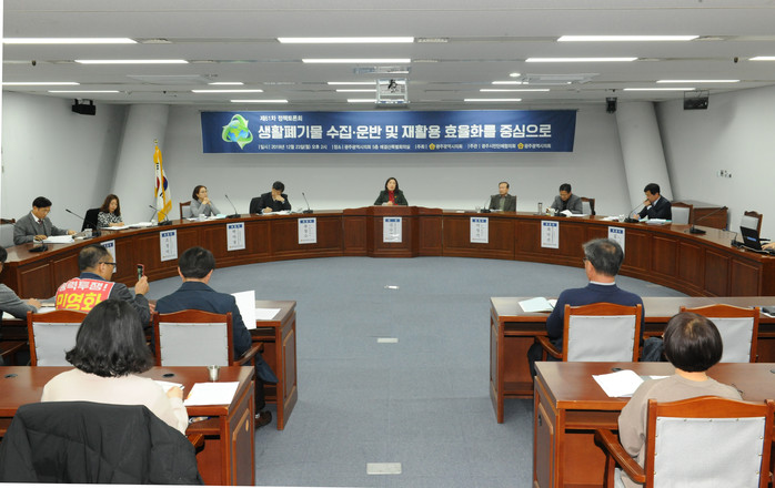 [광주=세계타임즈 손권일 기자] 시민생활과 가장 밀접한 생활폐기물 수집·운반에 대한 효율성을 모색하기 위한 정책토론회가 23일, 광주광역시의회 예결산특별회의실에서 열렸다.
