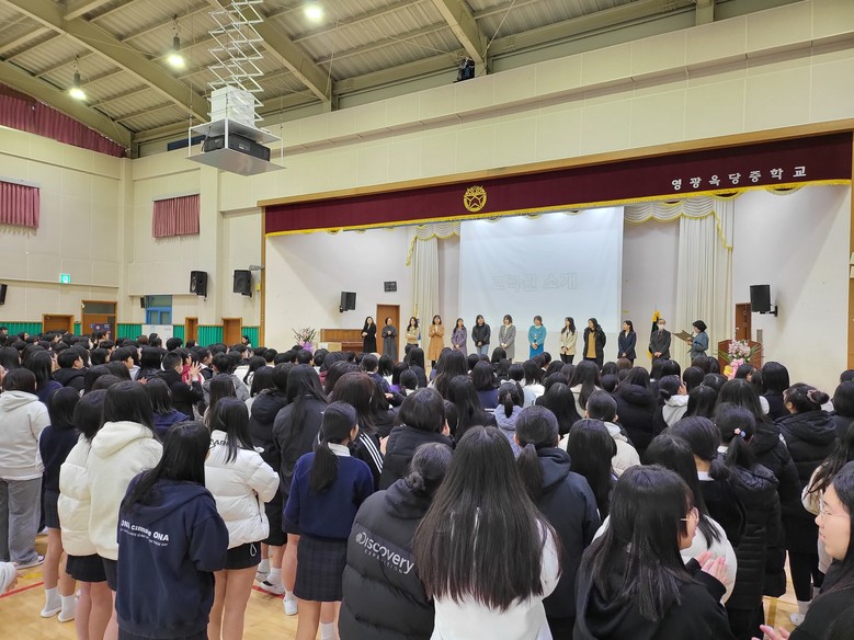 [전남 세계타임즈=우덕현 기자] 전라남도의회 장은영 의원(교육위원, 더불어민주당)이 3월 4일(월) 영광옥당중학교 체육관(미림관)에서 열린 신입생 입학식에 참석했다.