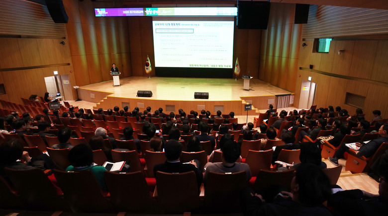 주요 순서는 ▲인공지능(AI) 디지털 대전환과 경기미래교육 주제 발표(교육의 본질회복, 경기미래교육의 지속과 확장, 미래조직문화 혁신) ▲인공지능(AI) 전환 시대에 따른 교육정책 방향 제시 ▲경기교육 디지털 플랫폼 ‘지원이(G-ONE)’ 안내 등으로 진행했다.