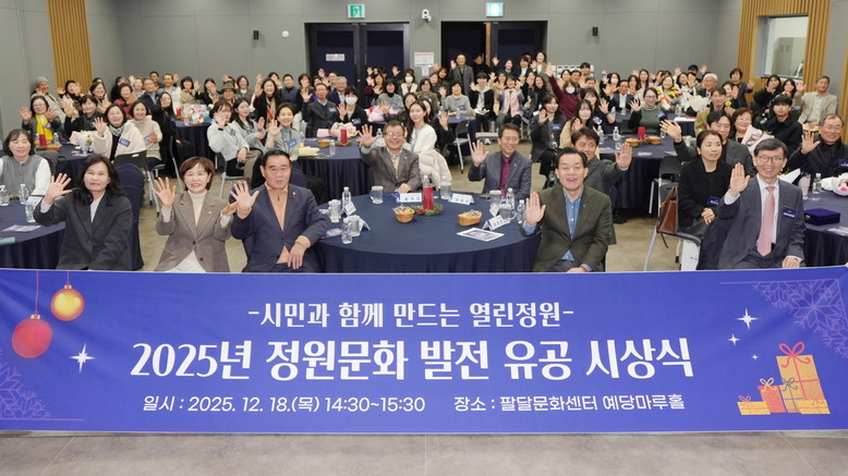 [수원시 세계타임즈=송민수 기자] 수원특례시(시장 이재준)는 18일 팔달문화센터 예당마루홀에서 ‘2025년 정원문화 발전 유공 시상식’을 열었다.