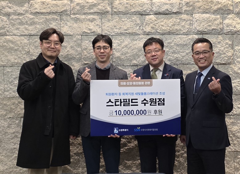 성금은 수원시사회복지협의회에 지정 기탁해 새빛돌봄스테이션 이용자를 위한 무장벽(배리어프리)설비 설치, 안전·편의 물품 지원 등에 사용할 예정이다.