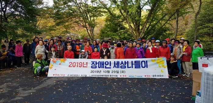 [대전=세계타임즈 이장성 기자] 대전시 SNS 봉사단체 사랑의 사다리 밴드(리더 이정제)는 29일, 오전10시~오후17시, 중구지체장애인협회(회장 김채린)의 공주 마곡사 세상나들이 행사에 참석해서 우리 사회의 따뜻한 사랑을 실천하였다.