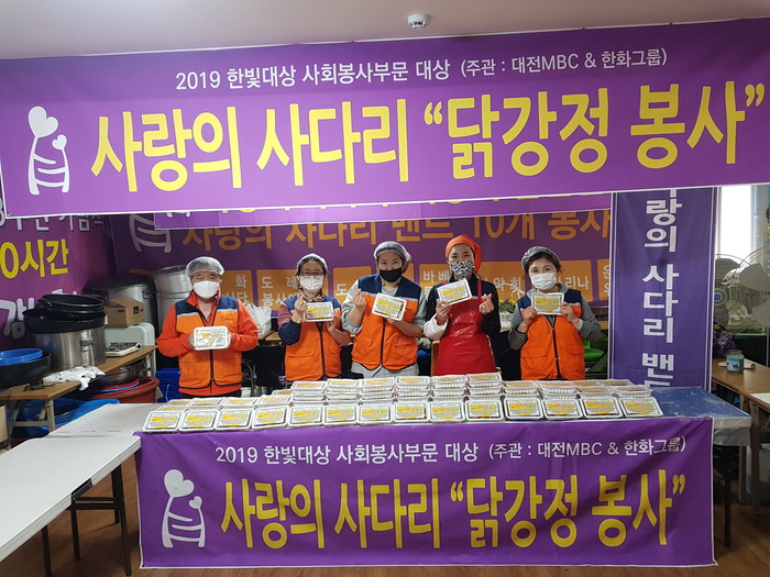 [대전=세계타임즈 이채봉 기자] 코로나19 상황에서도 비대면 봉사로 꾸준한 사랑나눔을 실천하고 있는 사랑의 사다리 밴드(리더 이정제)는 2일 오후3시, 코로나19 최전선에서 애쓰고 있는 동구보건소에 닭강정 110개 전달로 우리 사회의 따뜻한 사랑을 실천하였다.
