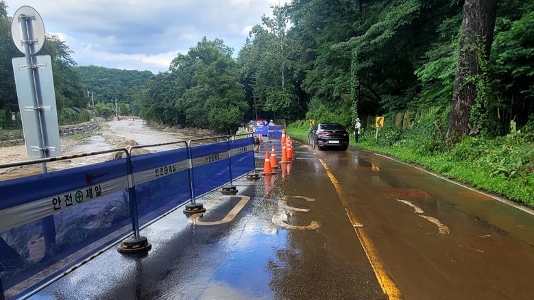 향후 도로 유실 구간에 대해 하천 제방을 톤백마대로 임시 복구하고, 임시포장 작업을 병행할 계획이다.