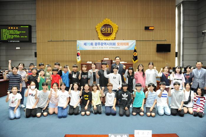 이번 학생 모의의회는 광주제석초등학교가 위치한 남구 주월동 지역구 의원인 김용집 의원, 임미란 부의장이 참관한 가운데 학생 120여명이 참여하여 조례안 심의·의결, 5분 자유발언을 하는 등 지방의회 의정활동을 체험하는 방식으로 진행되었다.