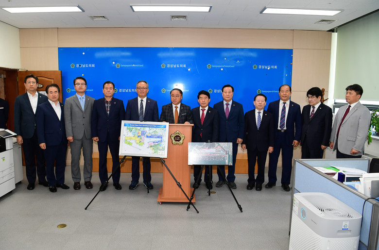 [경남 세계타임즈=최성룡 기자] 대한민국 최대 국책사업인 진해신항 건설이 본격화하고 있는 가운데 24일 경남도의회 1층 브리핑룸에서 박춘덕(국민의힘, 창원15) 의원을 비롯한 창원지역 출신 도의원 20명이 기자회견을 열어, 진해신항의 내륙컨테이너기지 ICD* 건설을 통해 해수부가 배후물류단지 공급부족 문제 해결에 적극 나설 것을 촉구했다.