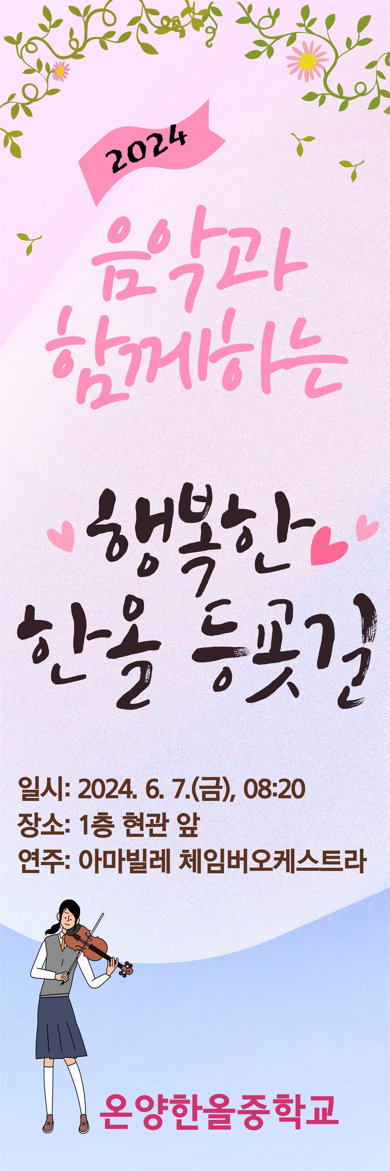 [아산시 세계타임즈=백택기 기자] 온양한올중학교(교장 박성병)는 충청남도교육청에서 지원하는 2024 충남 학생 오케스트라를 운영하고 있다. 오케스트라 학생은 총 23명으로 제1 바이올린, 제2 바이올린, 비올라, 첼로로 편성된 현악 오케스트라이며 매주 동아리 시간과 점심시간을 활용해서 연습하고 있다.