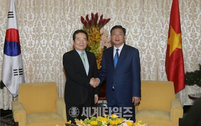 [세계타임즈 이채봉 기자]베트남을 공식방문 중인 정세균 의장은 현지시간 4월 27일(목) 오전 딩 라 탕(Dinh La Thang) 호치민시 당서기를 면담하고, 양국간 경제협력 강화방안 및 전략적 동반자로서의 발전방안 등을 논의했다.