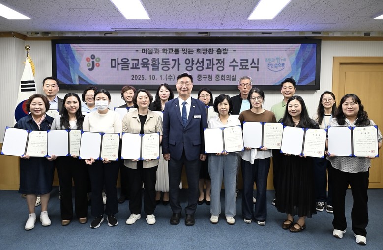 [중구 세계타임즈=이채봉 기자] 대전 중구(구청장 김제선)는 1일 중구청 중회의실에서 행복이음교육지구 사업으로 추진한 ‘2025년 중구 마을교육활동가 양성과정’을 마무리하고 수료식을 개최했다고 밝혔다.