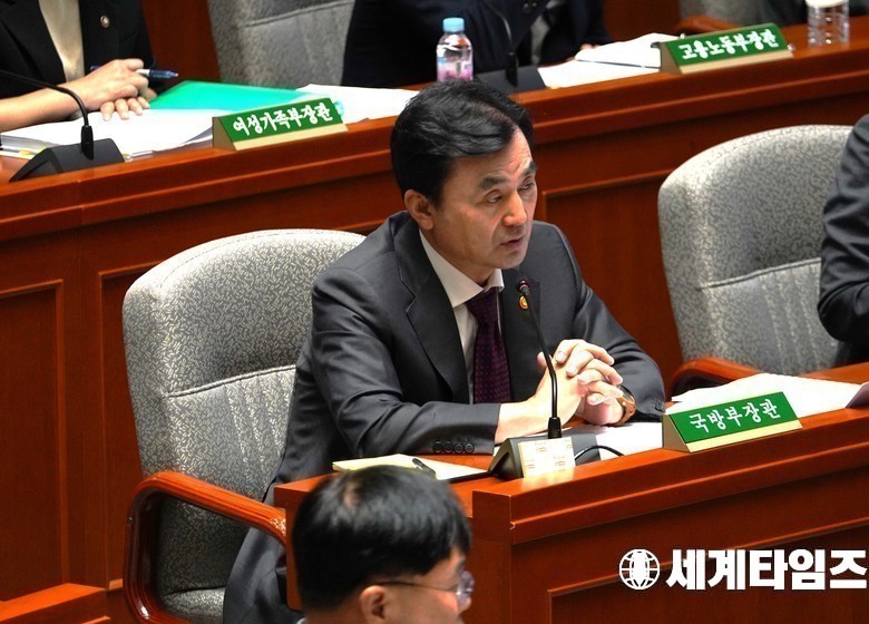 '안규백' 국방부장관이 26일 국회에서 열린 예산결산특별위원회 전체 회의에 참석해 발언을 하고있다.