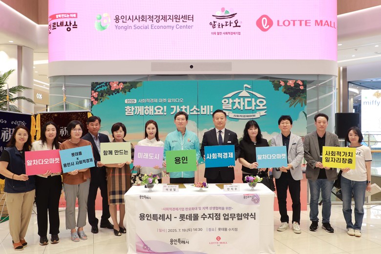 협약에 따라 시와 롯데몰 수지점은 용인지역 사회적경제기업이 성장과 자립을 할 수 있는 기반을 마련하고, 시민들에겐 사회적경제기업의 여러 제품을 합리적인 가격에 살 수 있는 기회를 제공하는데 협력하게 된다.