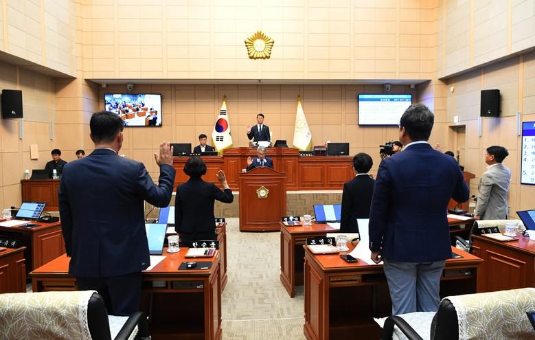 [고흥군 세계타임즈=우덕현 기자] 고흥군의회(의장 류제동)는 지난 2일(월) 제329회 임시회 1차 본회의에 앞서 공영민 군수를 비롯한 간부급 공무원들이 참석한 가운데 청렴실천결의를 실시함으로써 투명하고 신뢰받는 의회로 거듭나기 위한 발걸음을 이어가고 있어 눈길을 끌었다.