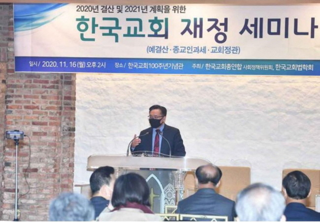 이날 서헌제(중앙대 명예교수) 회장는 교회 재정 운영 강연에서 “1인 교회라도 법적으로 모든 교회는 비법인사단으로, 목사와는 별개의 법적 주체성이 인정된다. 교회 정관을 마련하고 고유번호를 부여하며, 교회 명의의 통장을 개설해 교회와 목사 재정을 분리할 필요가 있다”며 “외부 지원금 또는 목사 개인이 교회 경비를 대부분 부담하는 경우에도 이를 헌금으로 교회 통장에 입금한 후 사례비, 교회운영비 등으로 출금해 사용해야 한다”고 제안했다.