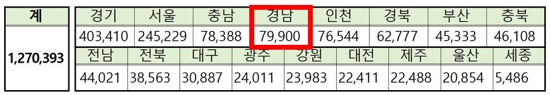 <시도별 등록외국인 수(법무부 2023.6.30.기준)>