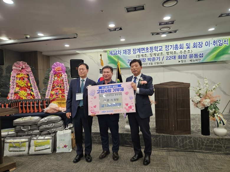 조장호 면장은 “따뜻한 마음을 전달해주신 재경장계초등학교 총동창회 동문분들께 감사하다”며 “소중하게 마련해준 기부금은 고향사랑기부제의 취지에 맞게 주민복리 증진 및 취약계층 지원 등 꼭 필요한 곳에 사용할 수 있도록 힘쓰겠다”고 밝혔다.