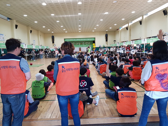 사랑의 사다리 밴드 회원 50명은 행사에 참석한 아이들과 1:1 후원자 역할을 하면서 놀이마당, 먹거리마당 등 행사부스를 다니면서 아이들과 즐겁고 행복한 시간을 보냈다.