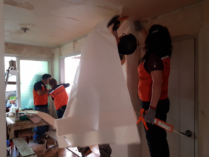 [대전=세계타임즈 이장성 기자] 대전시 SNS 봉사단체 사단법인 사랑의 사다리 밴드(리더 이정제)는 24일 오전8시~오후4시, 대덕구 비래동 장애인 모자가정을 위해서 도배봉사로 우리 사회의 따뜻한 사랑을 전달하였다.