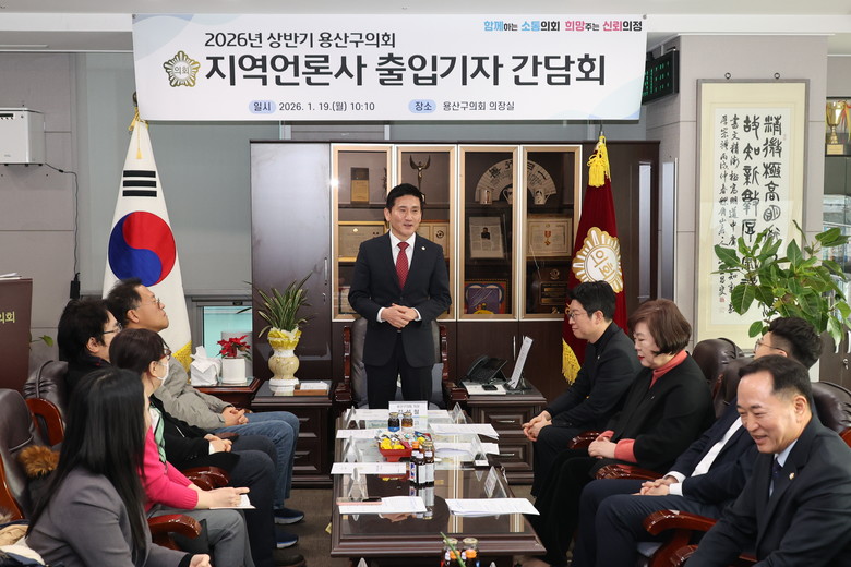 [용산구 세계타임즈=이장성 기자] 용산구의회(의장 김성철)는 1월 19일 의장실에서 지역 언론사 기자들을 초청해 제9대 용산구의회 후반기 의정활동과 언론과의 협력 강화 방안에 대해 의견을 나누는 기자 간담회를 개최했다.