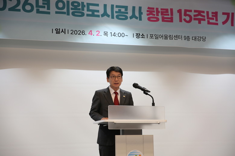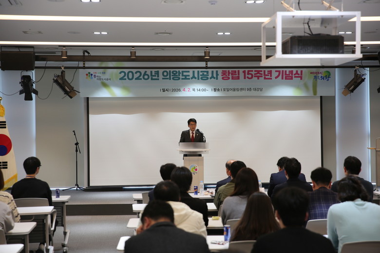 [의왕시 세계타임즈=송민수 기자] 의왕도시공사(사장 노성화)가 창립 15주년(4월 5일)을 앞둔 지난 4월 2일, 포일어울림센터 대강당에서 소속 임직원들이 참석한 가운데 ‘창립 15주년 기념식’을 개최했다.