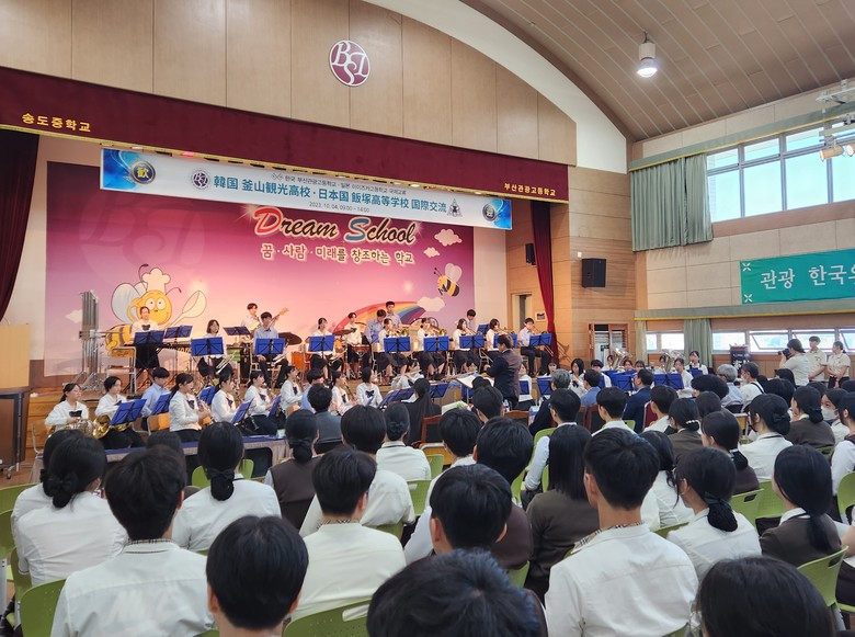 [부산 세계타임즈=이용우 기자] 부산 서구 부산관광고등학교(교장 황호근)는 지난 4일 일본 후쿠오카시 이이즈카고등학교 관현악부 학생 39명과 교직원 5명 등 총 44명이 부산관광고를 방문해 국제 문화교류 행사를 가졌다고 5일 밝혔다.