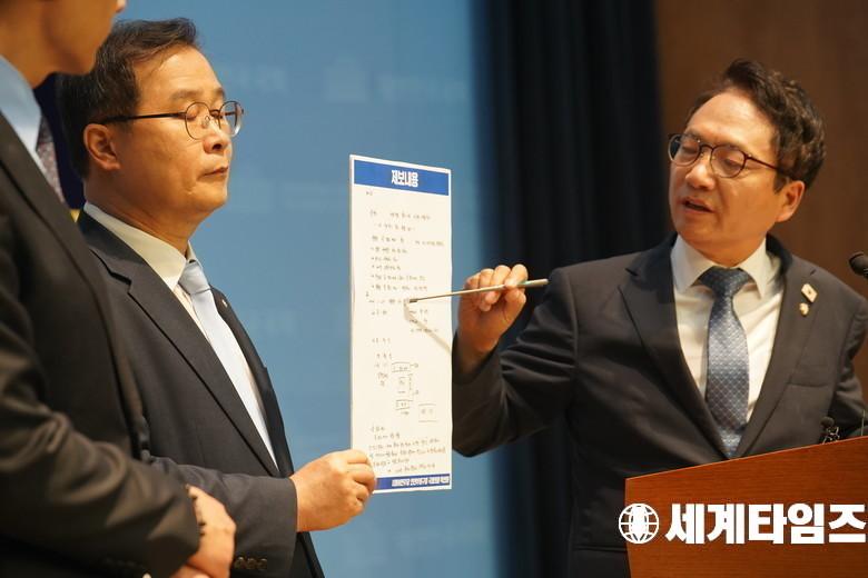 '박선원' 더불어민주당 의원이 6일 서울 여의도 국회 소통관에서 김성태 쌍방울그룹 전 회장 보석 석방과 김건희 여사 관련 의혹에 대해 더불어민주당 정치검찰 조작기소대응TF 긴급 기자회견을 하고 있다.