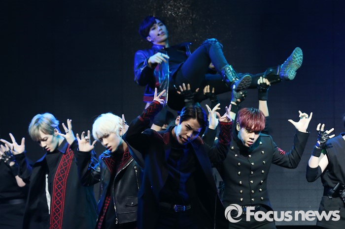 (서울=포커스뉴스) 30일 오후 서울 마포구 예스24 무브홀에서 열린 아이돌그룹 소년공화국의 세번째 미니앨범 [BR: evolution] 발표 쇼케이스에 참석한 멤버들이 'Get Down'무대를 선보이고 있다.
