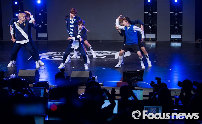 (서울=포커스뉴스) 24일 오후 서울 강남구 일지아트홀에서 아이돌 그룹 로미오의 미니앨범 'MIRO(미로)' 쇼케이스에 참여한 멤버들이 무대를 선보이고 있다.
