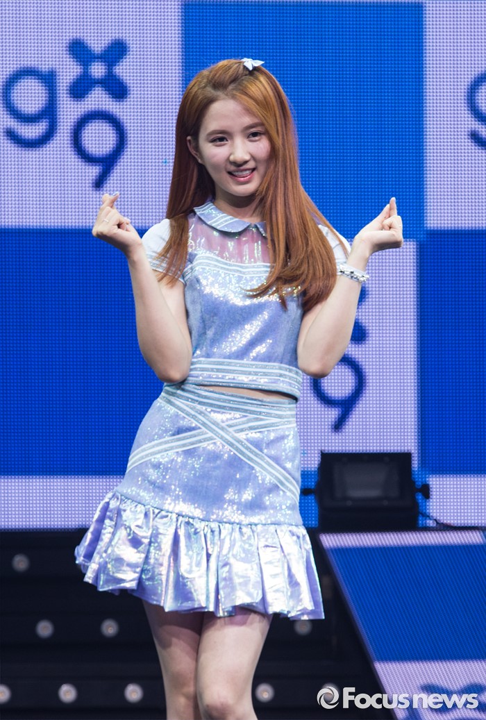 (서울=포커스뉴스) 28일 오후 서울 광진구 예스24 라이브홀에서 열린 걸그룹 구구단의 데뷔 쇼케이스에 참여한 멤버 샐리가 포토타임을 갖고 있다.
