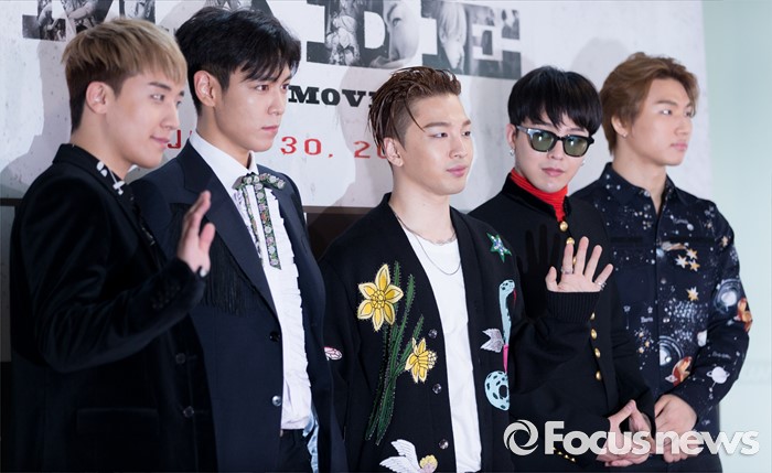 (서울=포커스뉴스) 28일 오후 서울 CGV 영등포점에서 영화 '빅뱅 메이드' VIP 시사회에 참석한 빅뱅이 포즈를 취하고 있다.