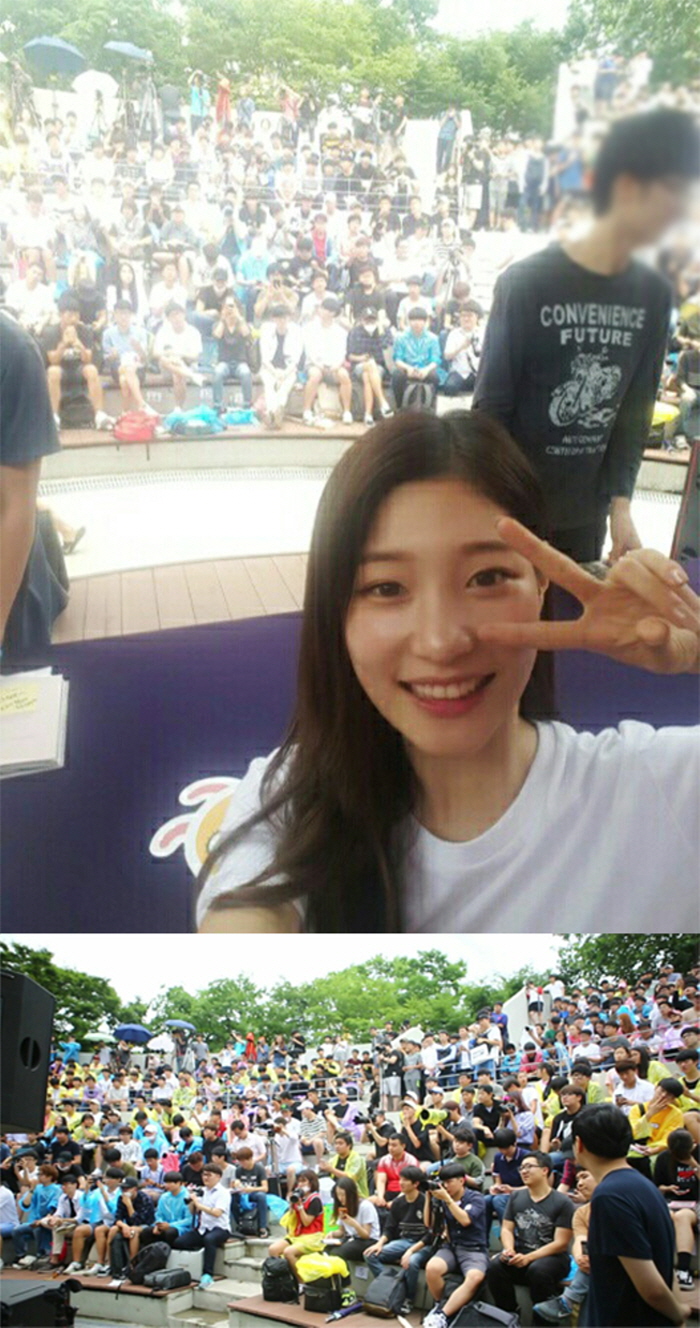 이날 정오부터 열린 팬사인회가 끝난 뒤 팬들을 위한 버스킹을 함께 준비한 다이아는 비가 내리는 악조건 속에서도 빗속으로 들어가 현장의 팬들과의 끊임없이 소통하는 것은 물론 네이버 v앱으로도 팬들을 만나며 '스킨돌'다운 진면목을 보여줬다.