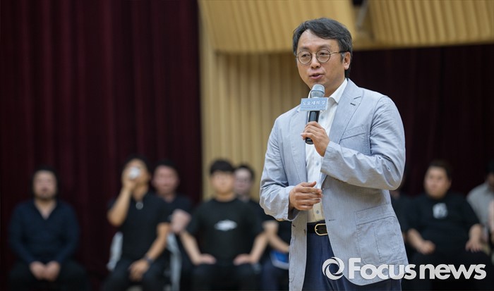(서울=포커스뉴스) 7일 오후 서울 종로구 세종문화회관에서 열린 오페라 '도요새의 강' 제작발표회에 참석한 구모영 지휘자가 작품을 소개하고 있다.