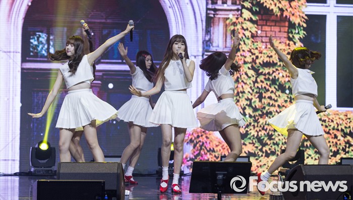 이번 발매한 앨범 타이틀 'LOL'에는 'Laughing out loud(크게 웃다)'와 'Lots of love(사랑을 듬뿍 보내다)' 등 두 가지 의미가 담겨 있다. 그 동안 여자친구가 추구해온 순수하고 청순한 이미지를 다시 한 번 보여줄 예정이다.(서울=포커스뉴스) 11일 오후 서울 광진구 예스24 라이브홀에서 열린 걸그룹 여자친구의 첫번째 정규앨범 'LOL' 발표 쇼케이스에 참여한 멤버들이 무대를 선보이고 있다. 2016.07.11 김유근 기자