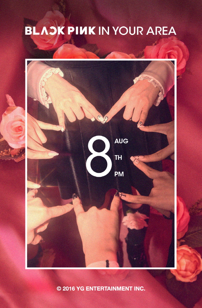 YG는 29일 공식 블로그를 통해 블랙핑크의 티저 포스터를 공개했다. 티저 포스터에는 블랙핑크 멤버들의 손으로 추측되는 사진과 ‘BLACK PINK IN YOUR AREA)’라는 문구와 함께 ‘8 AUG 8TH 8PM’ 이라고 밝혀 오는 8월 8일 오후 8시 데뷔를 예고하고 있다.